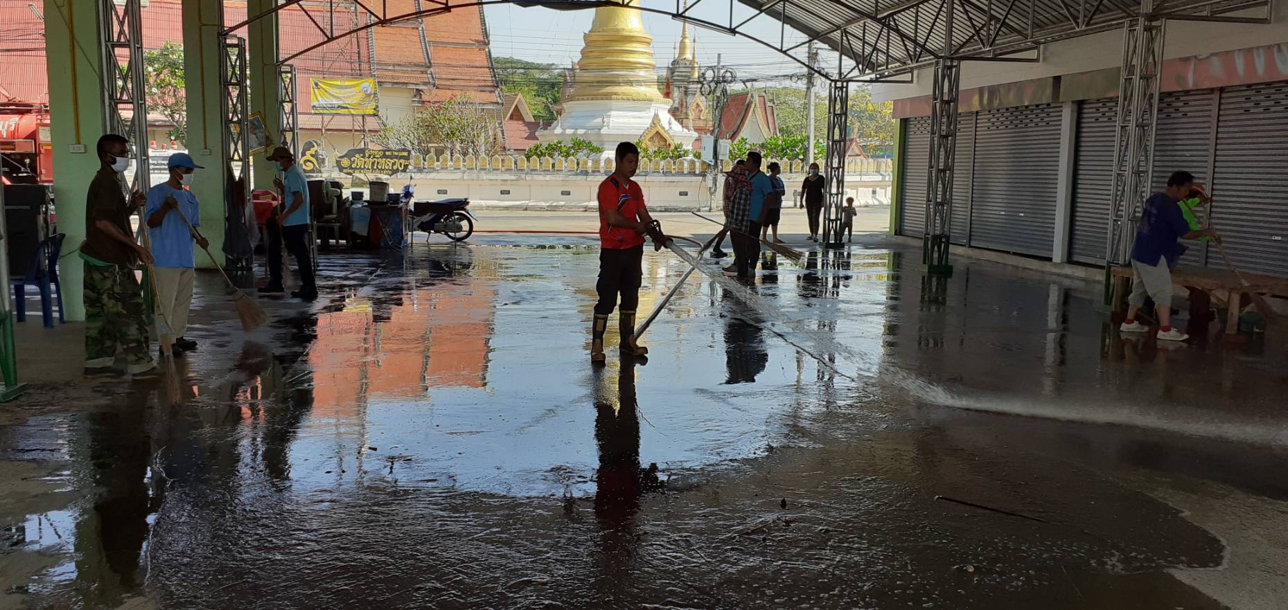 | นที่ 27 มีนาคม 2563 ณ ตลาดบ้านท่าหลวง ประชาชนร่วมกับเทศบาลตำบลเถินบุรี ร่วมใจกันทำความสะอาดตลาดบ้านท่าหลวง เพื่อเป็นการป้องกันการแพร่ระบาดของเชื้อไวรัสโคโรน่า หรือโควิด 19 |