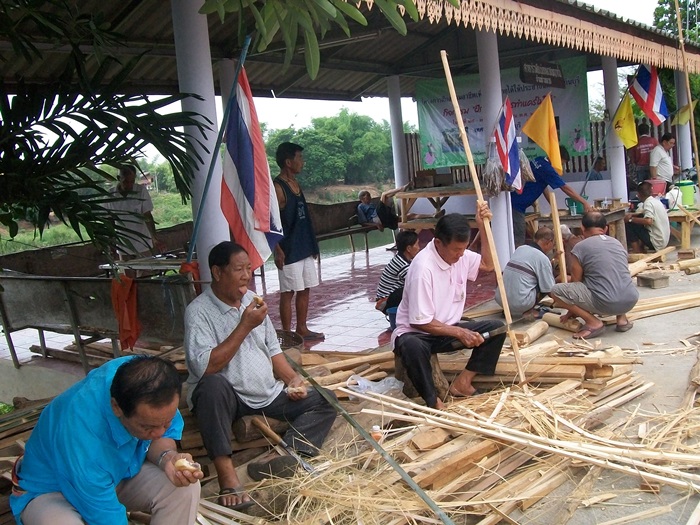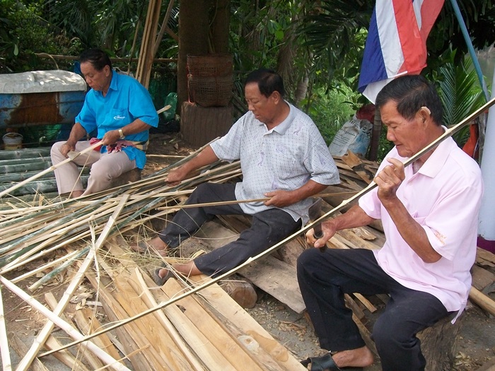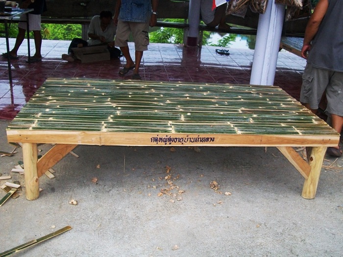 - ปูพื้นแคร่ด้วยไม้ไผ่สีสุกที่แก่จัด เมื่อแห้งแล้วจะมีสีสวยและเป็นมัน